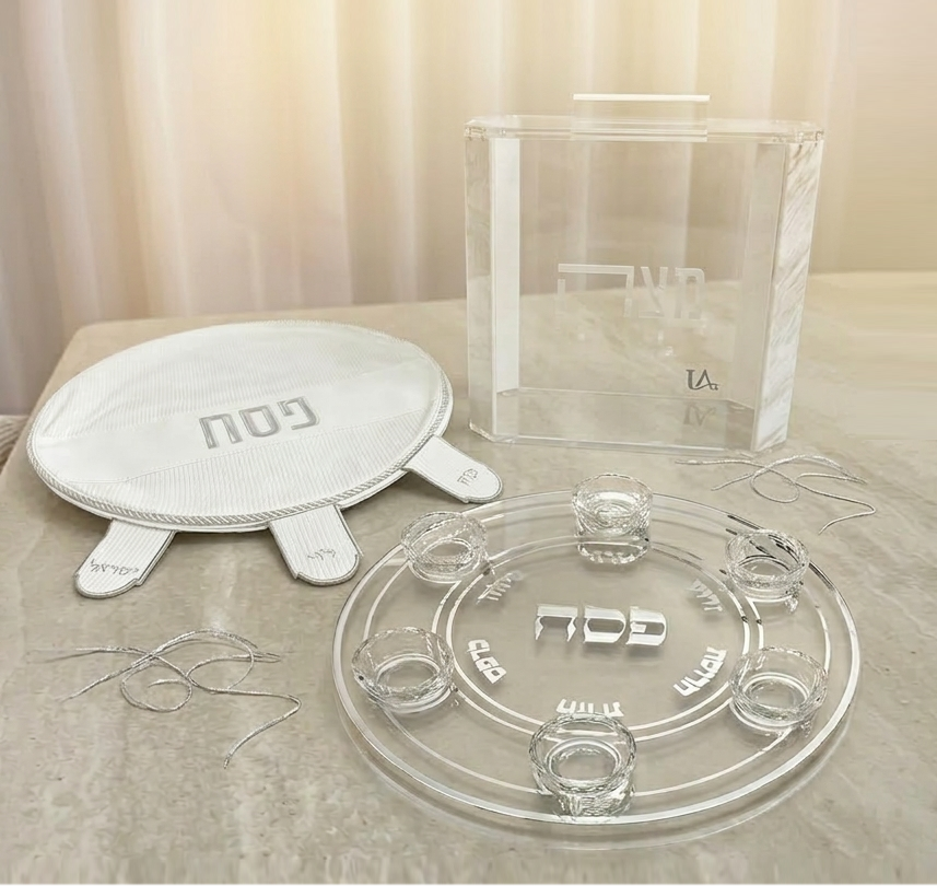 צלחת פסח זכוכית שקופה עם חריטת שם
