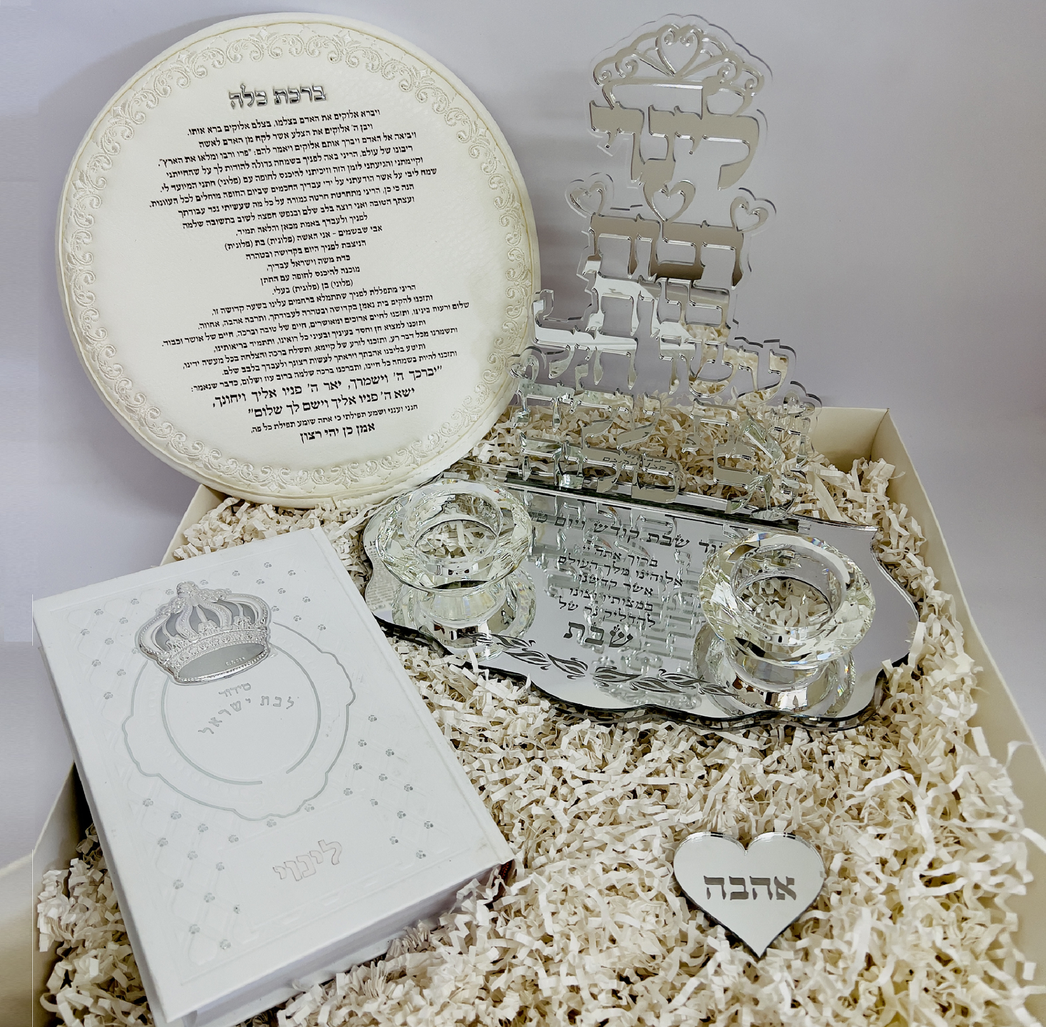 מעמד פמוטים להדלקת נרות שבת עם שם אישי